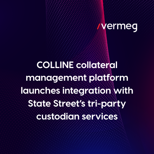 VERMEG, a specialized software house offering solutions in Banking, Capital Markets, Insurance and Digital Transformation, are proud to announce their support for the newest entry to tri-party custodian services: State Street. Participating COLLINE clients can seamlessly publish the corresponding RQV messages directly to State Street who in effect action segregated tri-party instructions for uncleared margin on behalf of clients. As a key functional differentiator amongst its peers, COLLINE is automatically populated with actual tri-party allocation positions to independently verify collateral eligibility, concentration, and market prices.