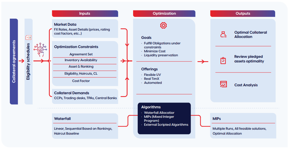 Monitors pledged collateral in real time and reassesses its optimality as markets shift.